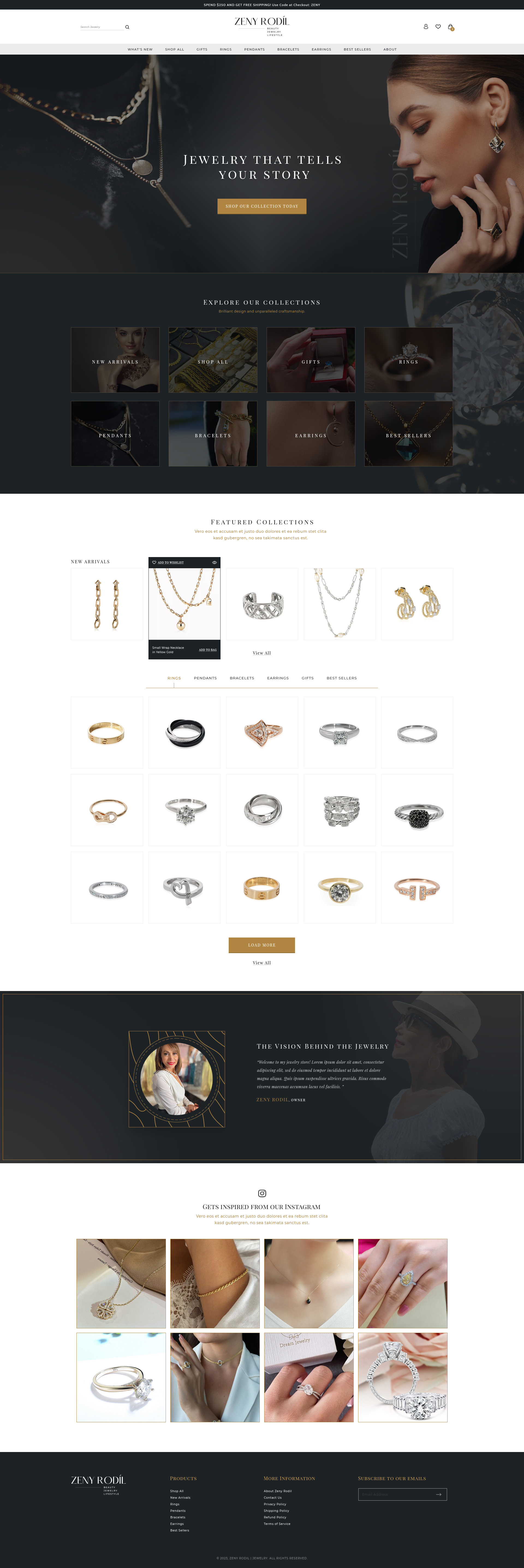 Zeny Rodil, a jewelry shop based in the USA, needed a classy yet minimalist website to showcase their elegant collections. The goal was to create a digital presence that reflects the brand’s sophistication while keeping the browsing and shopping experience simple and intuitive.